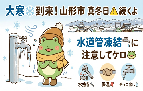 皆さん、こんにちは!設計・工務担当の飯尾です。先週の暖かい日差しはどこへ行ったのか寂しく感じる今週が始まりましたね。様々なメディアでも取り上げられている【最強寒波】に向けて水道管の凍結...
